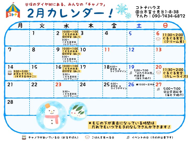 《コトナハウス11月カレンダー》